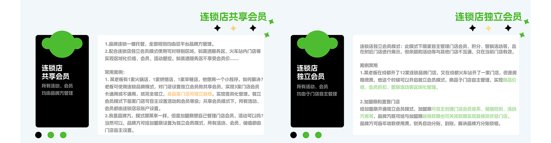 连锁门店模式-独立会员连锁门店独立会员模式此模式下商家自主管理门店会员、积分、营销活动等且在附近门店···